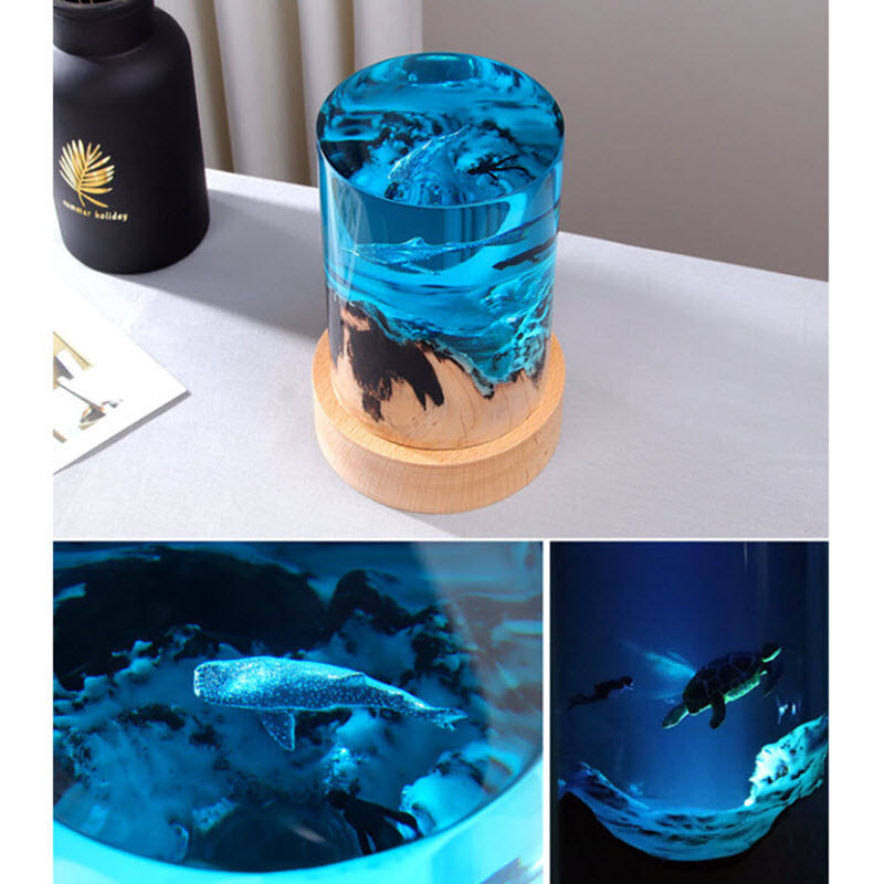 Each EPX001 epoxy resin lamp is hand-poured by skilled artisans using high-quality resin and solid natural wood. The epoxy captures intricate oceanic details, from rippling waves to lifelike marine forms.