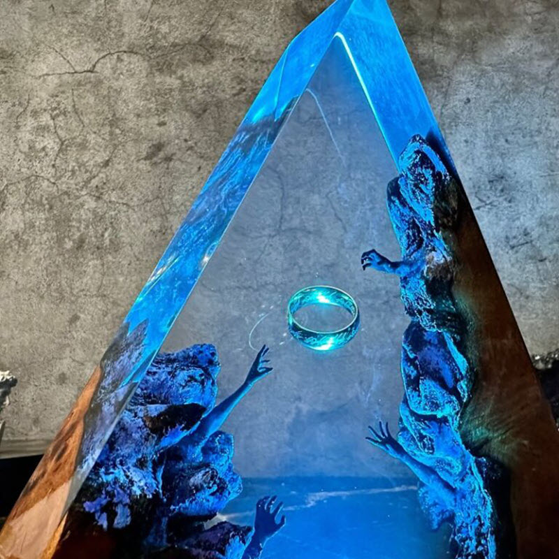 The EPX010 One Ring Epoxy Resin Lamp is a handcrafted masterpiece, suspending the iconic Ring in a dramatic, triangular scene of resin art. It is the ultimate birthday gift or a spectacular piece of home decoration for any fantasy enthusiast.