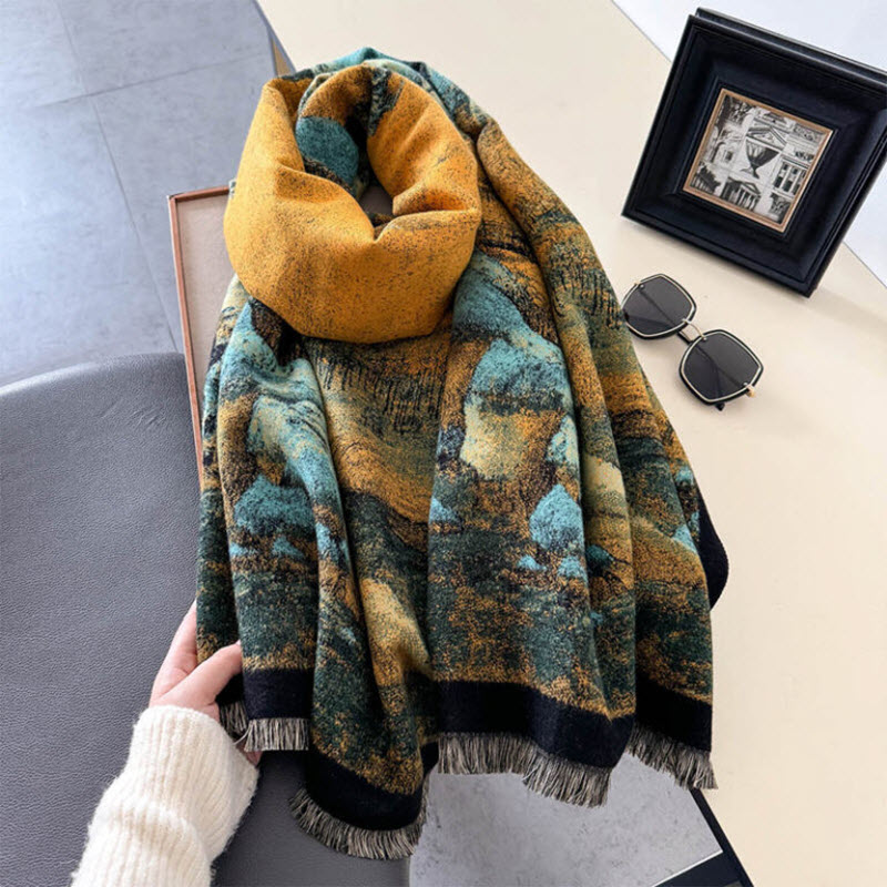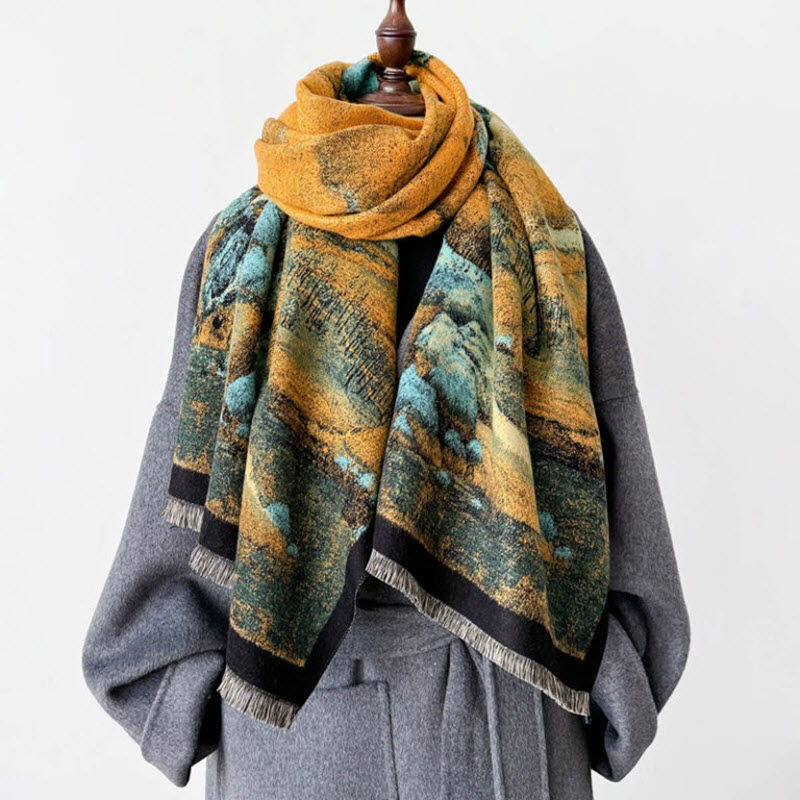Looking for an anniversary gift for wife that’s both beautiful and symbolic? This scarf represents connection and care, a reminder of shared memories and lasting affection. Searching for gifts for mom that express gratitude and tenderness? The soft cashmere and serene landscape reflect comfort and serenity, perfect sentiments for a mother’s love.