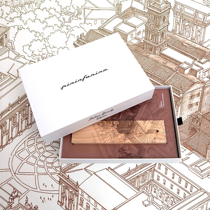 This edition is part of Pininfarina’s Italian Beauty collection, which celebrates iconic Italian cities like Florence, Venice, Milan, and Rome. The Roma edition stands out with a unique wooden base engraved with the city’s architectural landmarks. The perspective drawing is created by Francesco Corni, known for his ability to capture the soul of famous structures through detailed linework.