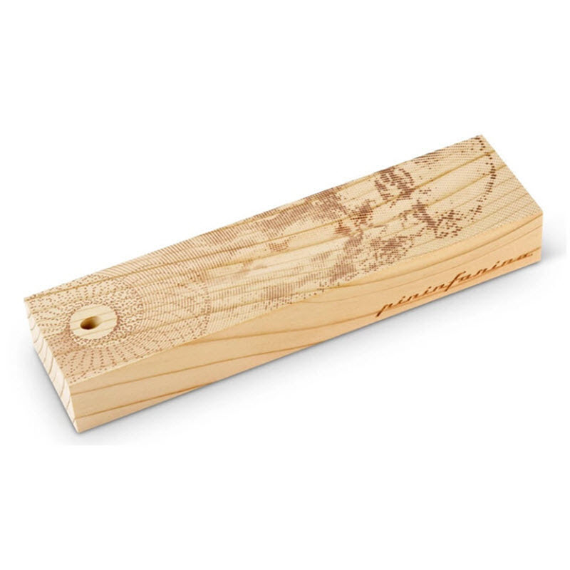 Each Pininfarina Leonardo Da Vinci 500th Anniversary Edition set is handcrafted in Italy. The cedar presentation box is carefully engraved, sealed, and polished for a clean, luxurious finish. The box measures 19.5 × 5 × 2.7 cm, a compact yet impactful display piece. The set also includes a custom-fit base where the pencil can stand upright, transforming it into a sculptural art object when not in use. The base highlights the pen’s aerodynamic shape, resembling both a fine tool and a design collectible.