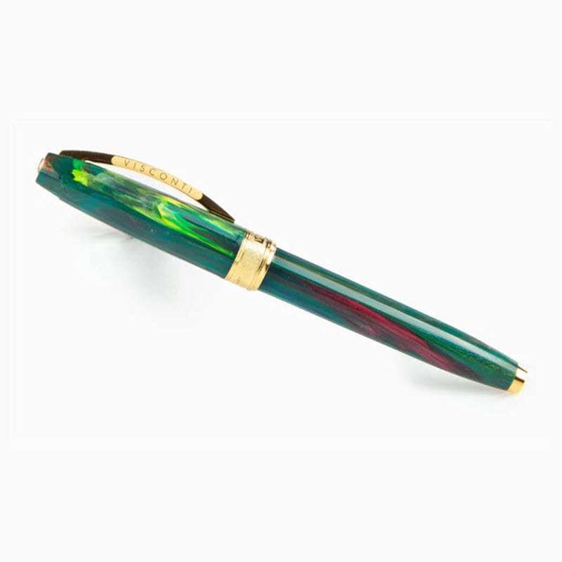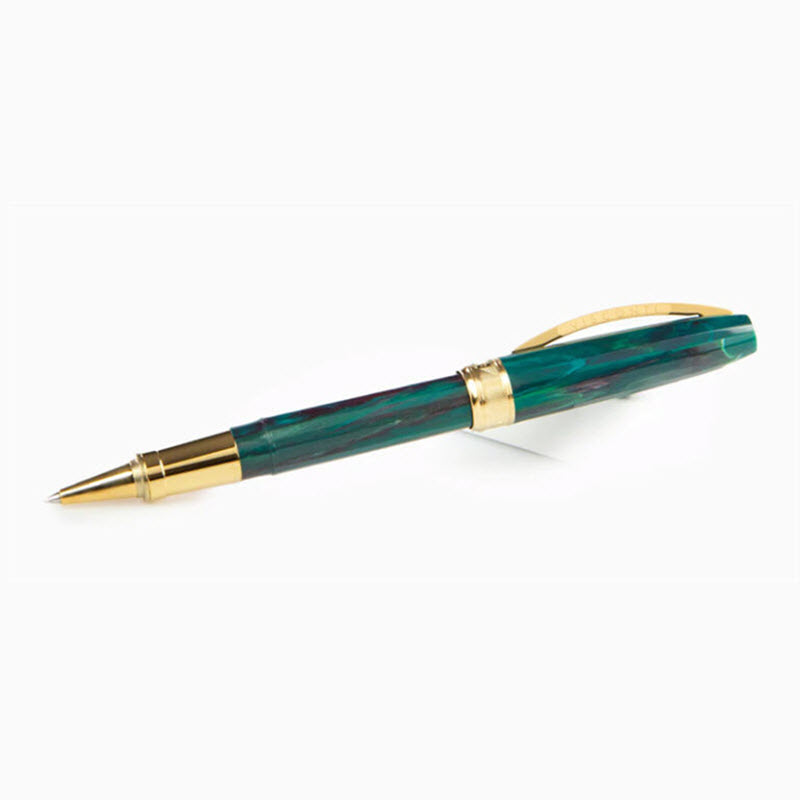 The Visconti Van Gogh ‘The Novel Reader’ Rollerball is a masterful tribute to the iconic painter, capturing the vibrant greens and passionate reds of his renowned artwork in a wearable piece of art. Its unique swirling pattern and gilded brass accents make it a truly spectacular item for any collector.