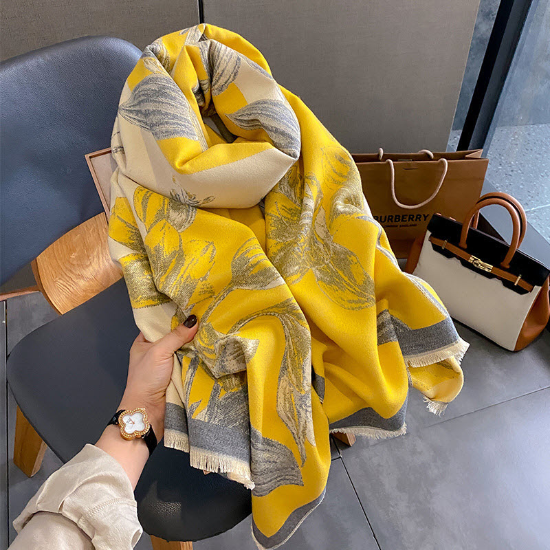 This scarf is designed for the sophisticated woman who cherishes quality and believes in wearing pieces that tell a story. With its striking Yellow Iris pattern, the KQ-WD36 brings a breath of natural beauty and joy to the often-drab winter wardrobe.